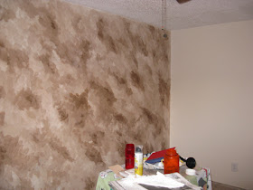Getting back to it and by it I am talking about our guestroom remodel project that we started in February. We are at the paint the walls stage and this weekend I spent an afternoon painting. Two of the walls are white, one wall is a light cream and the last wall has been painted with three different colors from the light cream to a dark brown.
