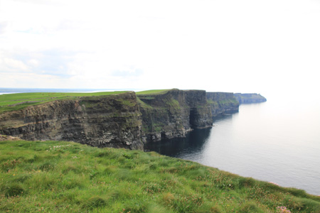 The Cliffs of Moher are Ireland's most visited natural attraction and for us was one of the biggest let downs. Sure the Cliffs rise to 700 feet and range for 5 miles over the Atlantic Ocean. Sure they built a new visitor center in 2007 that is tucked back into the hill in cave like fashion to minimize the visual impact and has a grass covered roof. The visitor center also uses geo-thermal and solar energy but ~ here comes the but ~ one million people visit every year and the main tourist season in Ireland is from May to September. This was the most tourists we had seen in one place, all milling around and walking right in front of you. We stayed long enough to take a few photos and walk the steps in both directions, watch the farmer on the hill work his field and made mooing sounds to the cows feeding on the hill, then we were out of there and on down the road.