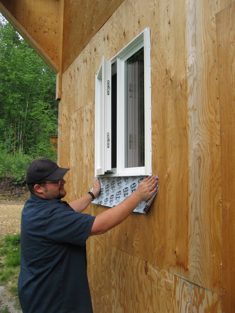 Next up was putting in the windows! There are five windows total on the cabin and as you can see it was lightly raining the day we installed them.